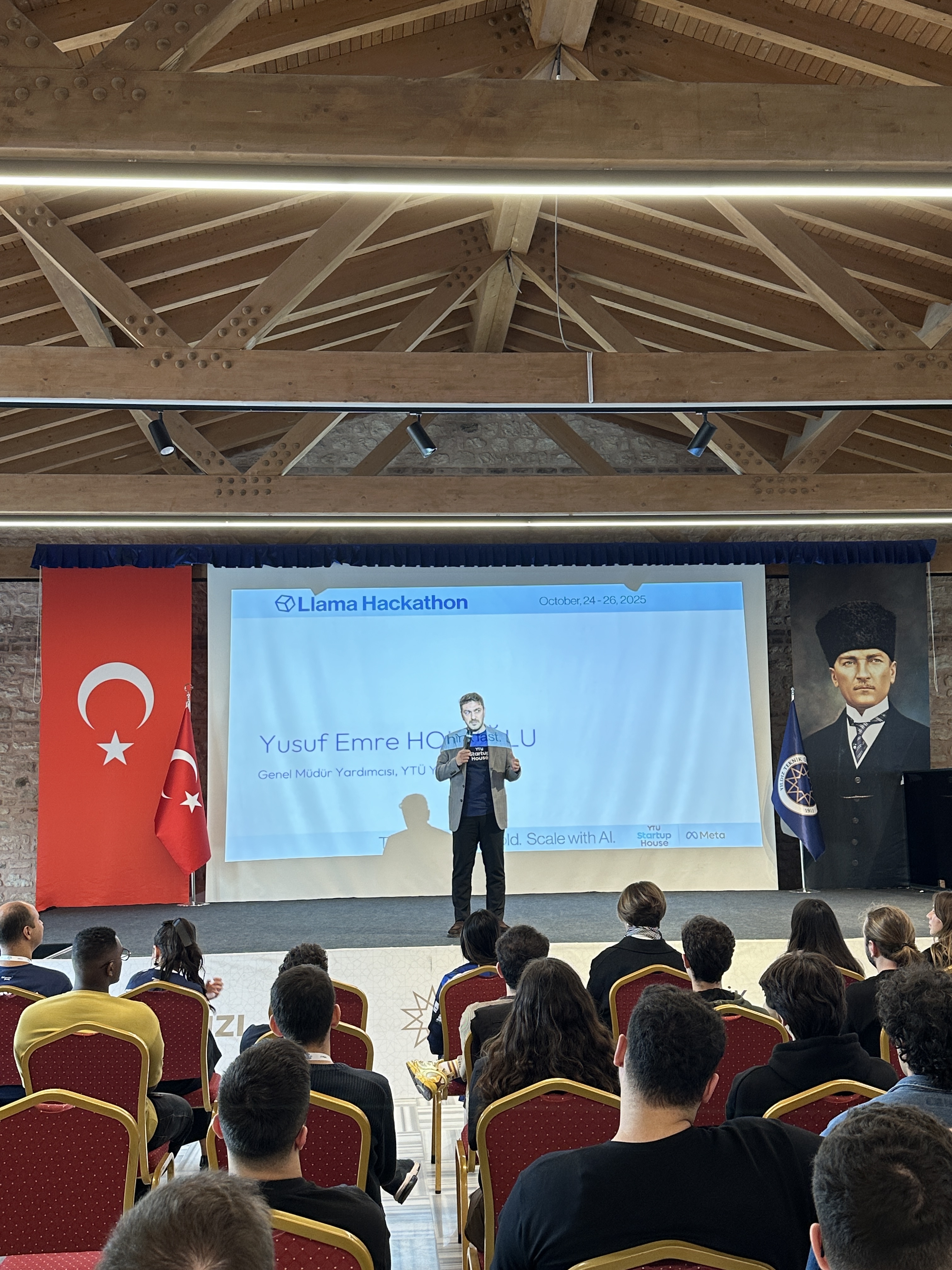 Yıldız Teknik Üniversitesi (YTÜ) ve YTÜ Yıldız Teknopark bünyesinde faaliyet gösteren girişimcilik merkezi YTU Startup House, Meta iş birliğiyle düzenlediği Llama Hackathon ile genç girişimcilere kapılarını açtı. 24-26 Ekim 2025 tarihleri arasında YTÜ Davutpaşa Kampüsü’ndeki Tarihi Hamam’da yapılacak hackathon, “Think fast. Build bold. Scale with AI.” mottosuyla, öğrencileri en yeni yapay zekâ teknolojileriyle tanıştırıyor. Üniversite ve yüksek lisans öğrencilerinden oluşan takımlar, Meta’nın açık kaynak Llama modellerini kullanarak 48 saat boyunca gerçek dünya problemlerine yenilikçi AI çözümleri geliştirmek için yarışıyor.