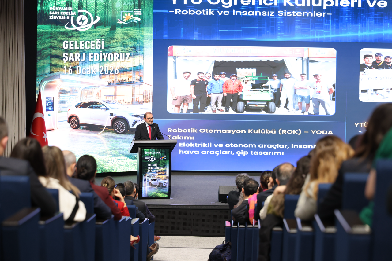 Türkiye’de elektrikli ulaşım ekosisteminin yol haritasını belirlemek amacıyla düzenlenen Dünyamızı Şarj Edelim Zirvesi’nin ikincisi Halkbank’ın ev sahipliğinde İstanbul Finans Merkezi’nde gerçekleştirildi. Yıldız Teknik Üniversitesi’nin (YTÜ) akademik vizyonu ile finans sektörünün gücünü birleştiren zirve, kamu, özel sektör ve üniversite temsilcilerini ortak bir platformda buluşturdu. Etkinlikte, elektrikli araç teknolojileri, şarj altyapısındaki dönüşüm ve bu süreci destekleyen yeni nesil finansal çözümler masaya yatırıldı.