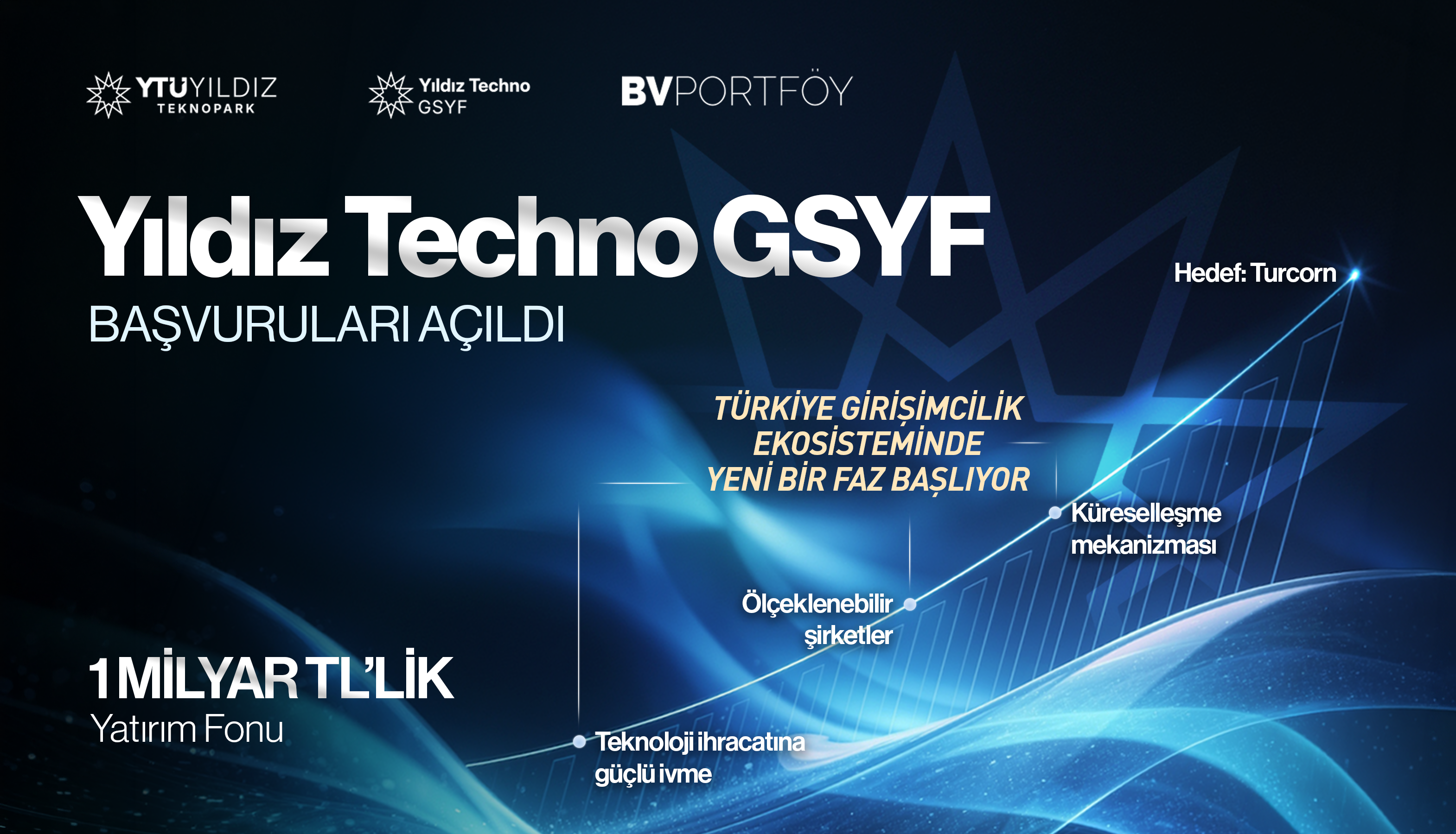 YTÜ Yıldız Teknopark liderliğinde, BV Portföy iş birliğiyle kurulan Yıldız Techno Girişim Sermayesi Yatırım Fonu (GSYF), teknoloji girişimlerine yönelik yatırım sürecini resmen başlattı. 1 milyar TL bütçeli fon, global hedefleri olan, hızlı ölçeklenebilir ve ‘exit’ stratejisi güçlü girişimlere doğrudan yatırım yapmaya hazırlanıyor.